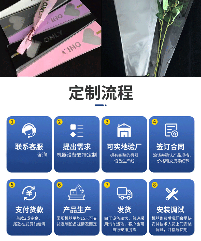 | 特點: *該機適用于BOPP、OPP、CPP、PE、PP等熱塑料性薄膜進行自動連續(xù)加工異形熱切袋,適用于制作服裝袋、文具袋、鮮花袋、三角袋等。 *采用日本伺服馬達控制,主電機采用臺灣變頻調(diào)速,意大利光電眼跟蹤彩印,出袋輸送裝置采用進口皮帶及臺灣變頻調(diào)速。 *放料架配置自動糾偏、磁粉制動張力控制系統(tǒng)。 *采用高精度控溫儀自動控溫,使不同厚度的膜都能保證封線牢固美觀。 *熱切刀采用進口耐熱鋼鍛造,高溫加熱不易變形,封棍采用耐高溫硅膠材料。 *電腦控制系統(tǒng)具有自動計數(shù),累計數(shù),提前報警,暫停等功能,自動控制開停機。 *根據(jù)客戶加工不同袋樣,可更換異形刀模具。 *由于不斷研究改進,我司保留改變設(shè)計之權(quán)利。 |