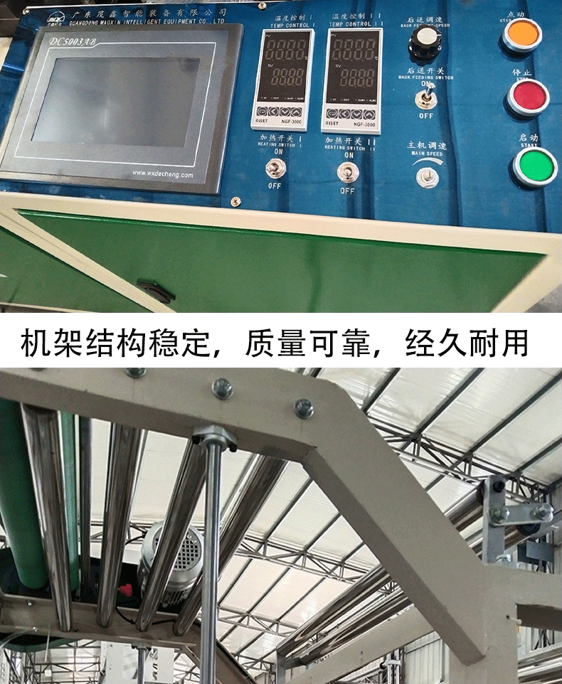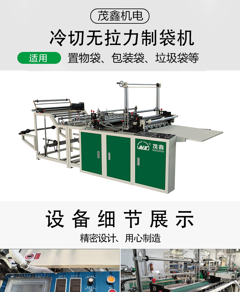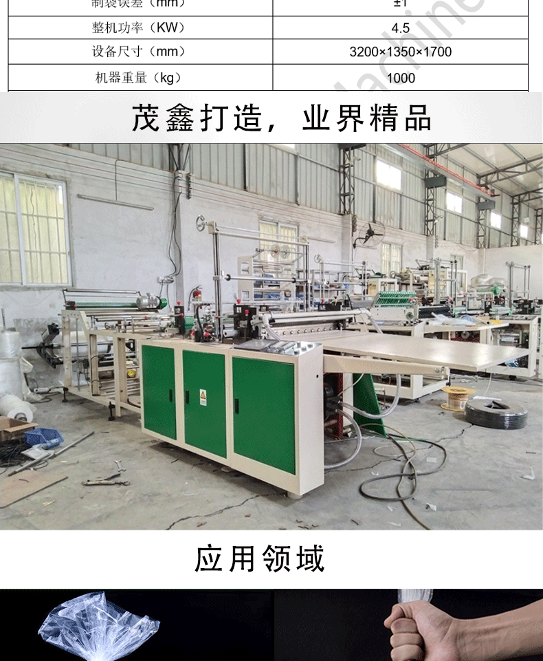 ![]() ![]() ![]() ![]() ![]() ![]() ![]() ![]() ![]() ![]() ![]() 特點(diǎn): *該機(jī)適宜加工各擋HDPE、LDPE、PP等筒狀,塑料薄膜的本色或彩色平口袋、背心袋。 *該機(jī)特點(diǎn)是減少機(jī)器在運(yùn)行中薄膜袋封口拉伸現(xiàn)象,能加工薄膜袋焊接寬度為1-10mm的袋子,增加袋子的焊接強(qiáng)度。 *電眼跟蹤彩印薄膜色標(biāo),圖文位置更準(zhǔn)確。 *焊刀采用合金鋼加工制作,分三段加溫,兩端用加熱管加溫,單獨(dú)溫度表控制。 *焊刀后面加倍送,單獨(dú)伺服電機(jī)控制,壓力用氣缸控制。 *電腦設(shè)定制袋長度和速度,廢品少,操作更簡單。 *具有送料、封切、計(jì)數(shù)、出料、報(bào)訊等自動化功能。 主要技術(shù)參數(shù): ![]() *由于不斷研究改進(jìn),我司保留改變設(shè)計(jì)之權(quán)利。 |